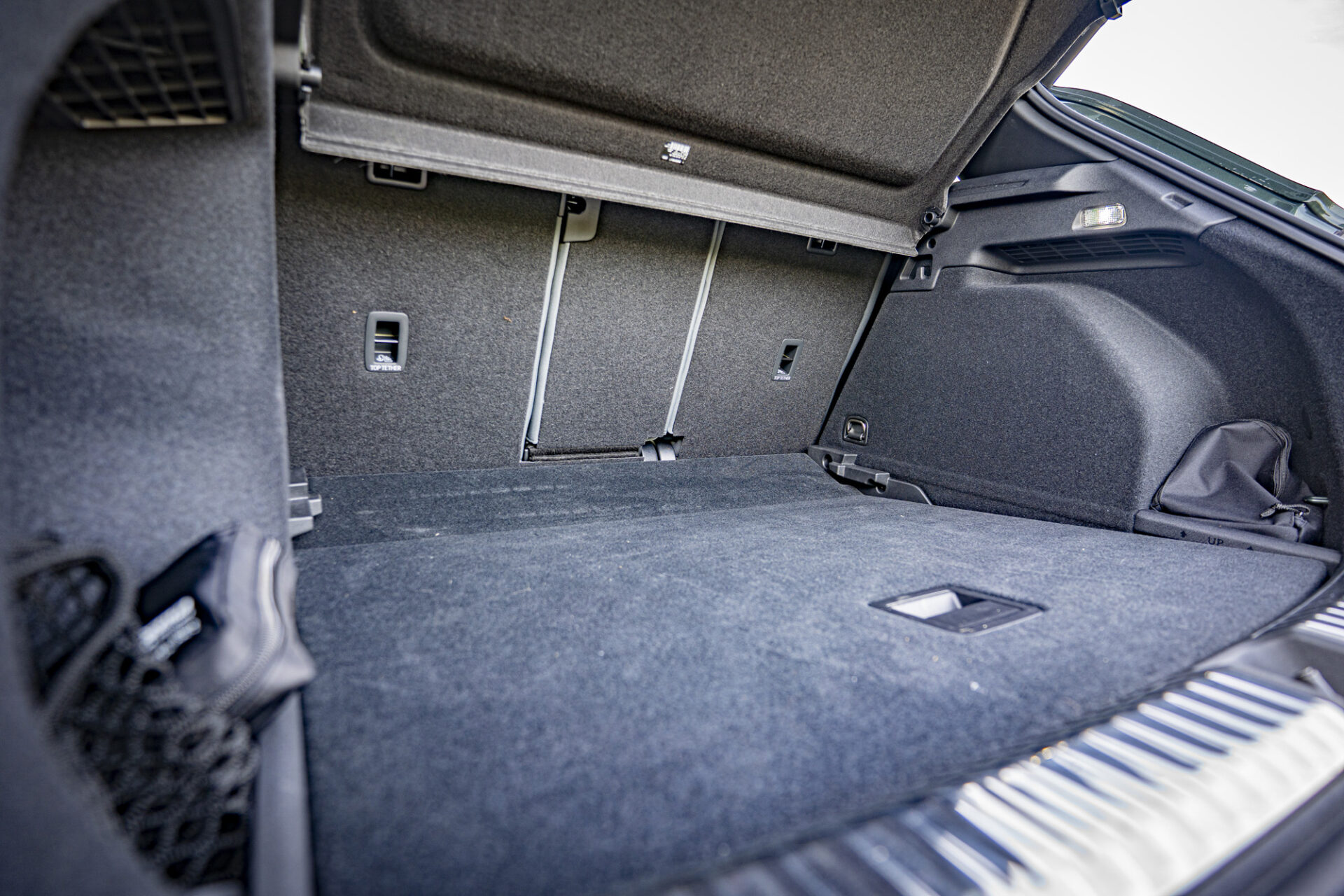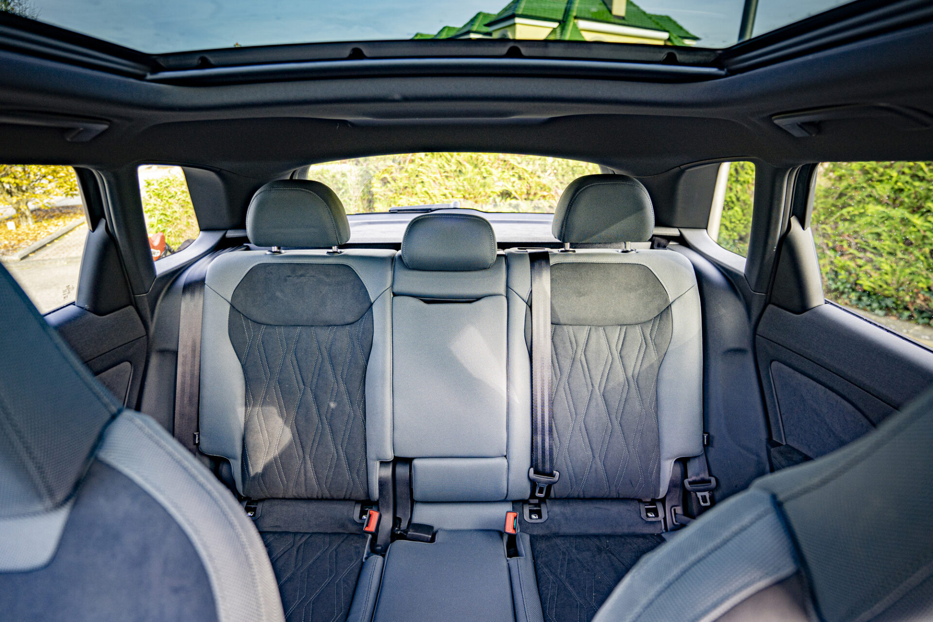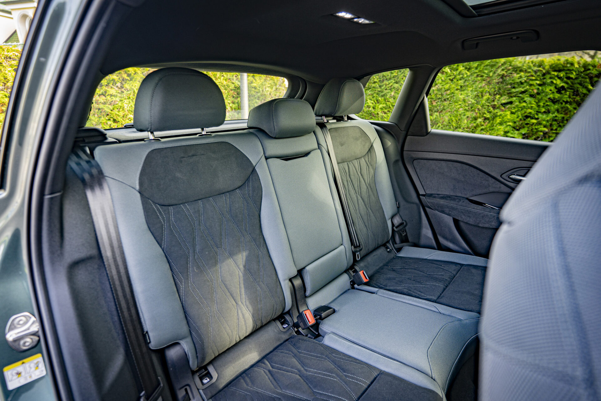 Der Kofferraum hat je nach Position der verschiebbaren Rücksitzbank ein Volumen von 488 bis 575 Litern und verfügt über einen doppelten Boden (nicht bei Plug-in-Hybridmodellen). Der Q3 teilt sich seine MQB-Evo-Plattform mit dem Volkswagen Tiguan, was sich im Fond bemerkbar macht: fünffach verstellbare Sitzbank, großzügige Beinfreiheit dank eines Radstands von 2,68 Metern und ausreichend Kopffreiheit für Personen über 1,85 Meter. Einziger Wermutstropfen: Die Klimaanlage lässt sich nur über den Bildschirm einstellen.