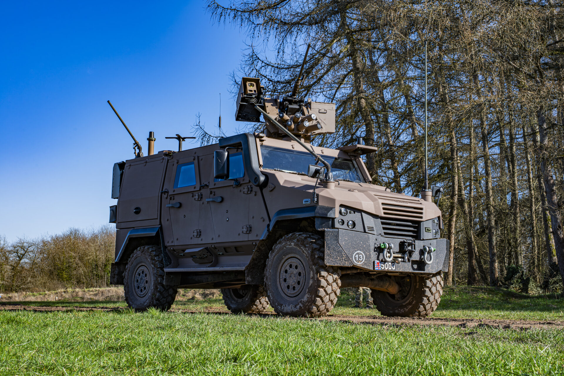 Unauffällig auf der Straße, leistungsstark im Einsatz: Das „Command, Liaison and Reconnaissance Vehicle“ (CLRV) wird das Aufklärungsfahrzeug der luxemburgischen Armee. Es basiert auf der Plattform Eagle 5 und bündelt in 9,2 Tonnen modernste Militärtechnologie – konzipiert für Mobilität, Schutz und Kommunikation in feindlichem Gebiet.