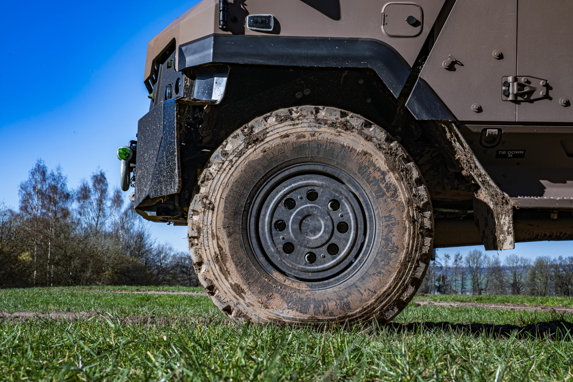 Eine der auffälligsten Innovationen an Bord ist das CTIS – Central Tire Inflation System. Damit kann der Fahrer die Reifen jederzeit direkt von seinem Sitz aus aufpumpen oder die Luft ablassen. Durch das Absenken des Drucks vergrößert sich die Auflagefläche am Boden, was die Traktion auf weichem Untergrund erheblich verbessert.
