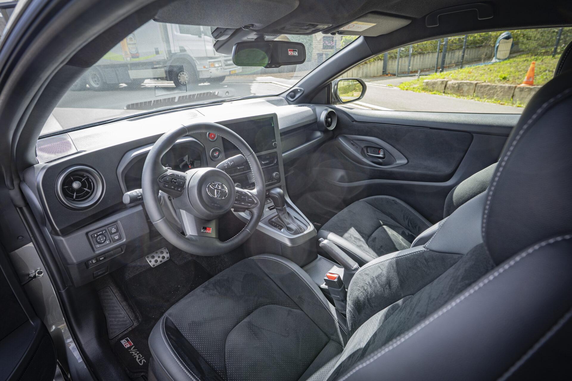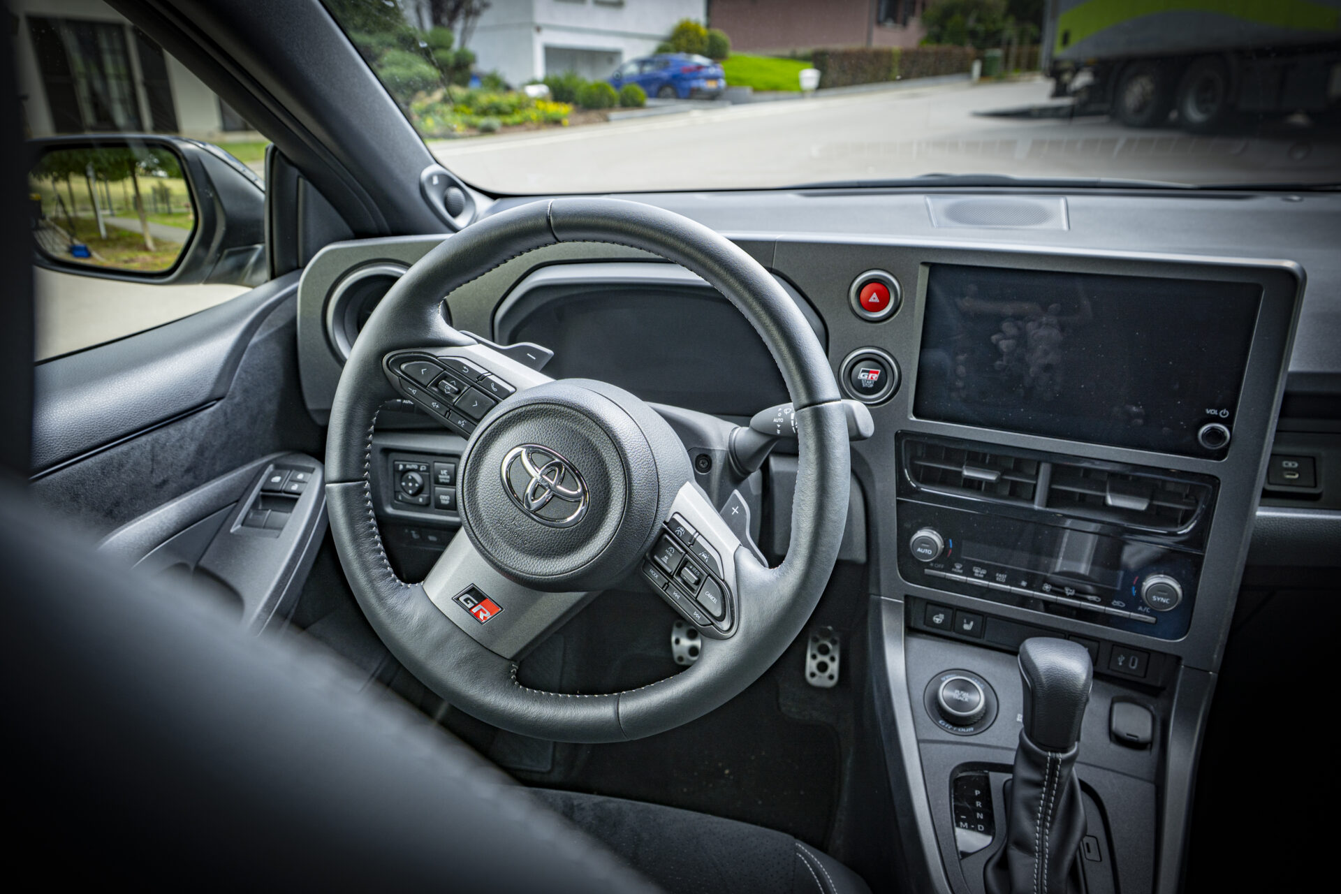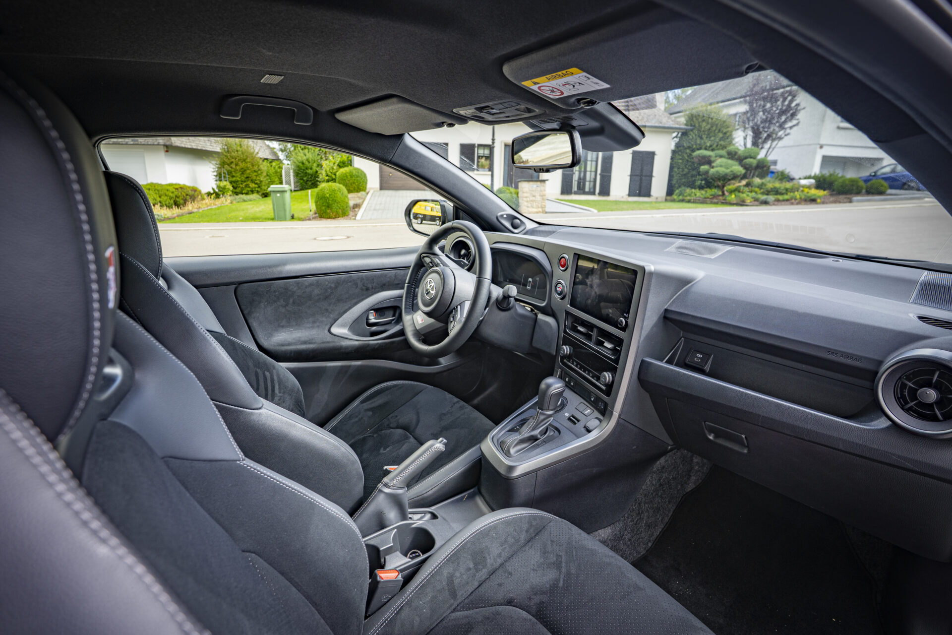 Inside, everything is designed with the driver in mind, starting with the digital cockpit, where the rev counter and speedometer are clearly visible. The seat position has been lowered by 25 mm compared to the previous model, the rear-view mirror has been moved and the screen integrated into the centre console. These changes provide a more sporty seating position and better outward visibility, two points that had been criticised on the previous model. At first glance, the materials do not appear to be particularly high-end. However, this is a deliberate choice by Toyota. Thanks to the use of lightweight plastics and the absence of unnecessarily heavy equipment, the weight of 1,280 kg is kept as low as possible. The version equipped with the new 8-speed automatic transmission weighs 1,310 kg.