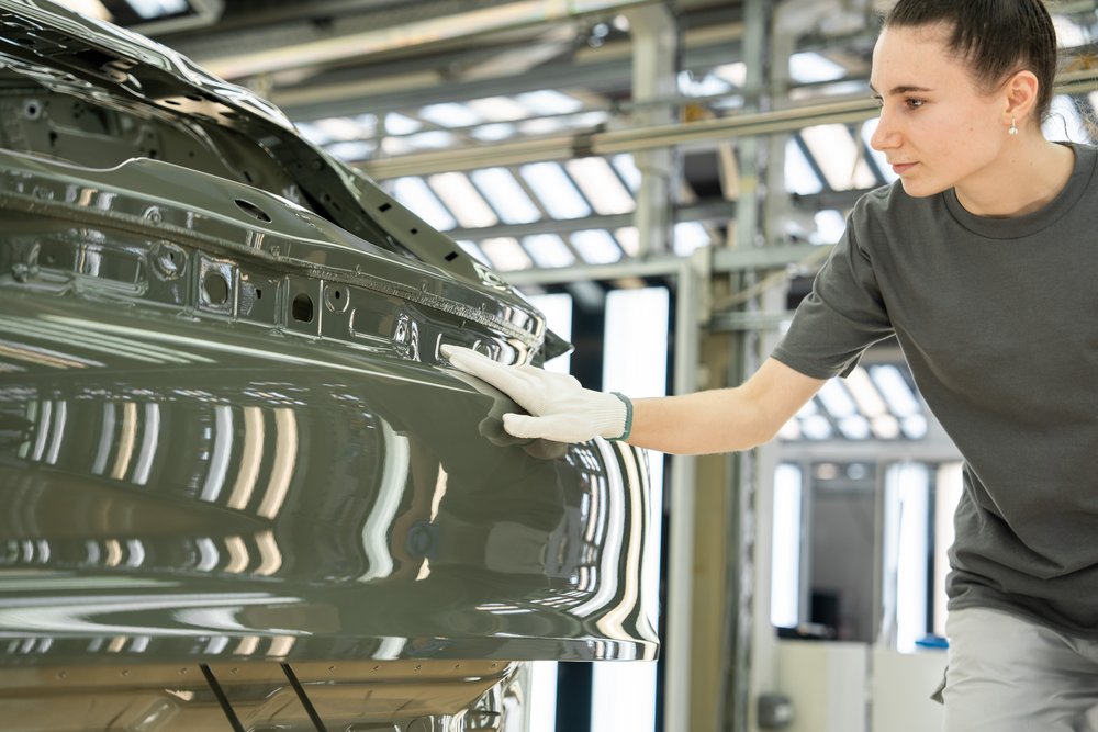 En parallèle de la production de la batterie, le Cayenne prend forme dans le « platform hall », là où naît sa monocoque, également appelée body in white. C’est ici que le châssis, ou « skateboard », reçoit progressivement les panneaux latéraux, le toit, les portes, le capot et le hayon. Les presses de formage exercent jusqu’à 9 300 tonnes de force afin de façonner chaque élément de carrosserie. Les panneaux sont ensuite contrôlés automatiquement pour vérifier leurs dimensions, avant d’être assemblés (par soudure, collage, rivetage ou vissage) avec une précision extrême. Une fois la structure constituée, l’alignement des éléments est minutieusement inspecté, à la fois par des systèmes de contrôle avancés et par les mains expertes des opérateurs sur la ligne d’assemblage. La monocoque finale est ensuite soumise à des contrôles approfondis, incluant des mesures tridimensionnelles et des inspections par rayons X, afin de garantir la qualité et l’intégrité des soudures. Une fois ces validations réalisées, la carrosserie rejoint l’atelier de peinture. Chaque monocoque y reçoit d’abord plusieurs couches de protection anticorrosion, avant l’application de la teinte choisie par le client. Porsche propose également une option exclusive et particulièrement exigeante, le « Paint to Sample » (PTS), permettant de personnaliser la couleur du véhicule selon des souhaits spécifiques.